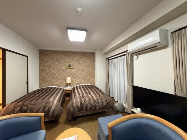 今回宿泊したこの和洋室タイプは洋室にシングルベッド2台、和室に布団3組。最大5人まで泊まれる広さで、父子グループ旅行にはちょうど良いサイズ感でした。