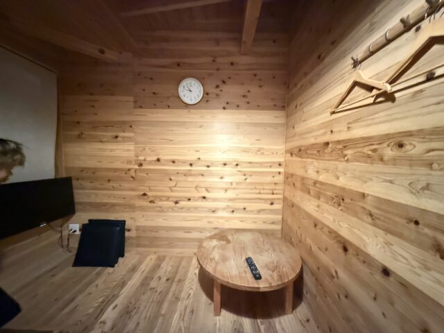 脱衣所は「ちゃぶ台と座布団」で湯上がり快適