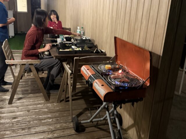 場所は隣との間の何となく通路感がある場所でのBBQですが、屋根付きのテラス。濡れることはありません。