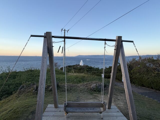 外に出ると、海に向かって設置されたブランコがあり、ここは子どもだけでなく大人も思わず座りたくなる場所。